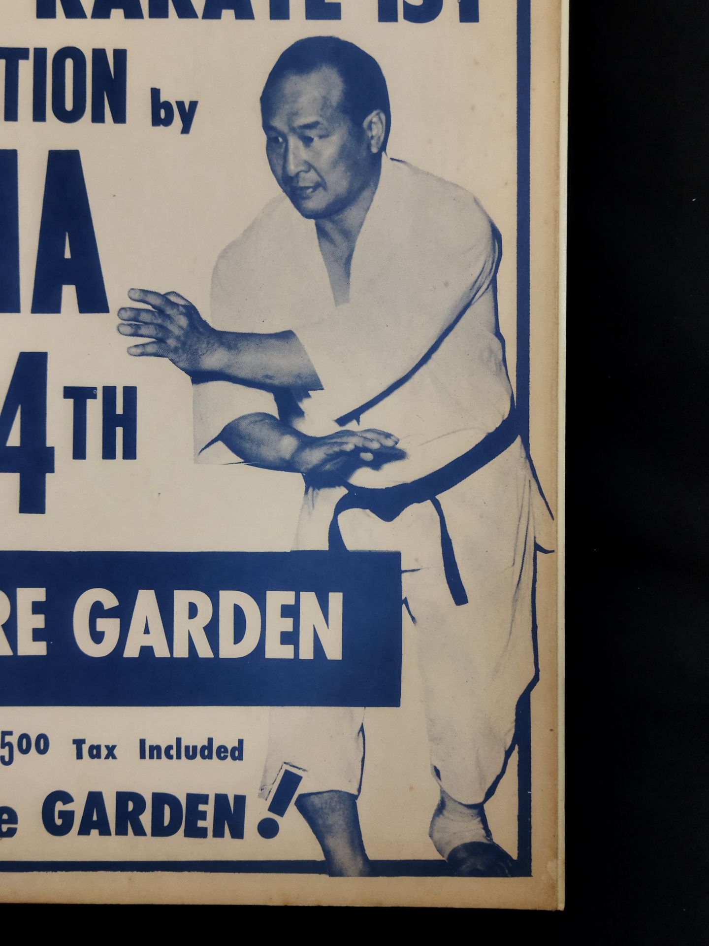 1962年 北米空手道選手権の記念すべき第1回大会がニューヨークのマジソン・スクエア・ガーデンで開催。極真史に刻まれた貴重な当時ものポスター。大会では最高審判長を努めた大山倍達によるレンガ割りの演武も行われた。また、同大会のポスターは極真会館の前身である大山道場にも飾られていた。参考資料付 / サイズ:58cm×37cm×1cm(厚さ) / ※発泡スチロールのパネルにポスターを貼り付けた仕様となっています。商品サイズの都合により、他の商品との同梱発送はできませんのでご注意ください。 The NORTH AMERICAN Karate TOURNAMENT / Masutatsu Oyama Kyokushin Karate Poster