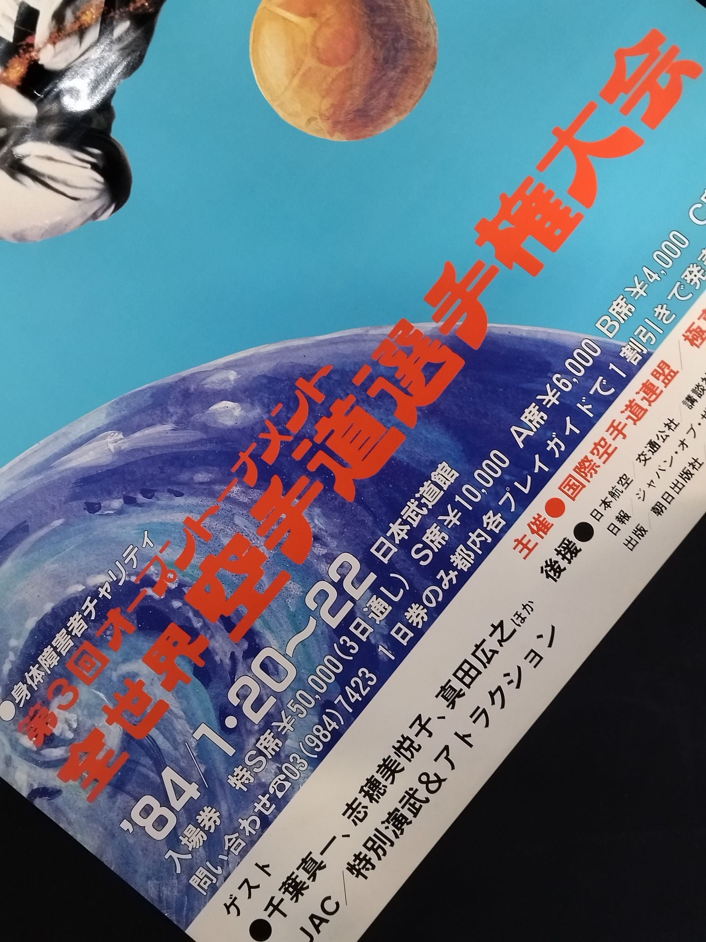 1984年 優勝:中村誠 準優勝:三瓶啓二 3位:松井章圭 4位:アデミール・ダ・コスタ / ゲスト:千葉真一、志緒美悦子、真田広之、他 / サイズ(73cm×52cm) kyokushin karate poster