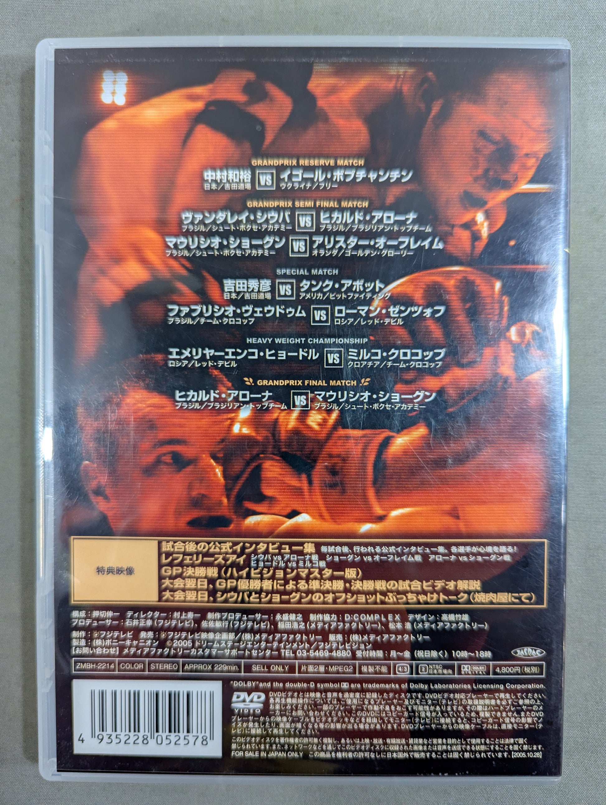 ショーグンvsアローナ ヒョードルvsミルコ他 全7試合収録!! 映像特典として公式インタビュー集や大会優勝者による試合解説や、シウバとショーグンの焼き肉屋でのぶっちゃけトークなど収録