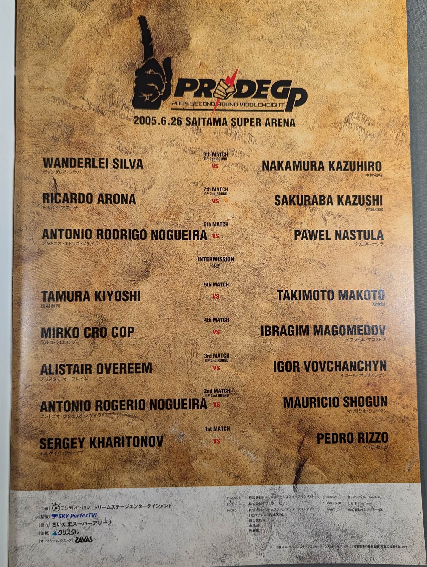 会場:さいたまスーパーアリーナ / 印刷対戦カード:ヴァンダレイ・シウバvs中村和裕 / ヒカルド・アローナvs桜庭和志 PRIDE GP 2005 MIDDLEWEIGHT SECOND ROUND / プライドグランプリ2005ミドル級セカンドラウンド / PRIDE Critical Countdown 2005