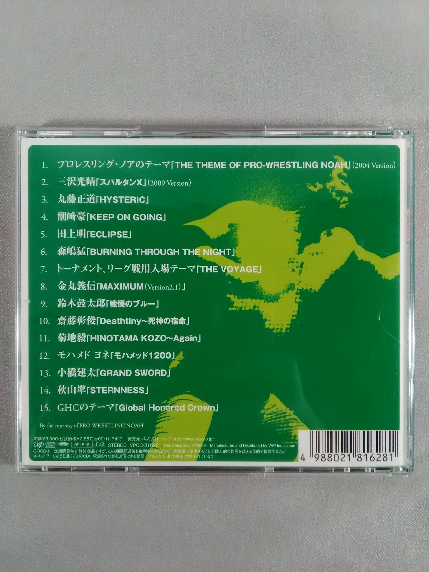 1.プロレスリング・ノアのテーマ「THE THEME OF PRO-WRESTLING NOAH」(2004Version) 2.三沢光晴「スパルタンX」(2009Version) 3.丸藤正道「HYSTERIC」 4.潮崎豪「KEEP ON GOING」 5.田上明「ECLIPSE」 6.森嶋猛「BURNING THROUGH THE NIGHT」 7.トーナメント、リーグ戦用入場テーマ「THE VOYAGE」 8.金丸義信「MAXIMUM」(Version2.1) 9.鈴木鼓太郎 10.齋藤彰俊「Deathtiny~死神の宿命」 11.菊地毅「HINOTAMA KOZO~Again」 12.モハメド・ヨネ「モハメッド1200」 13.小橋建太「GRAND SWORD」 14.秋山準「STERNNESS」 15.GHCのテーマ「Global Honored Crown」
