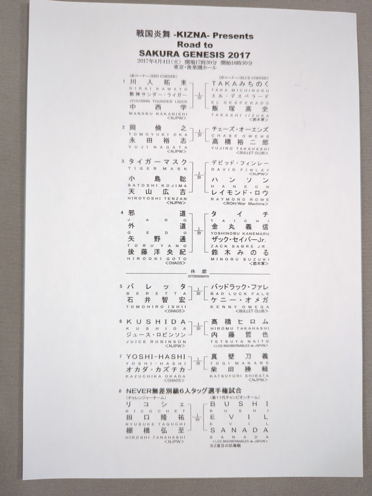 会場:後楽園ホール / 別紙対戦カードあり:【NEVER無差別級6人タッグ選手権】棚橋弘至&リコシェ&田口隆祐vsSANADA&EVIL&BUSHI