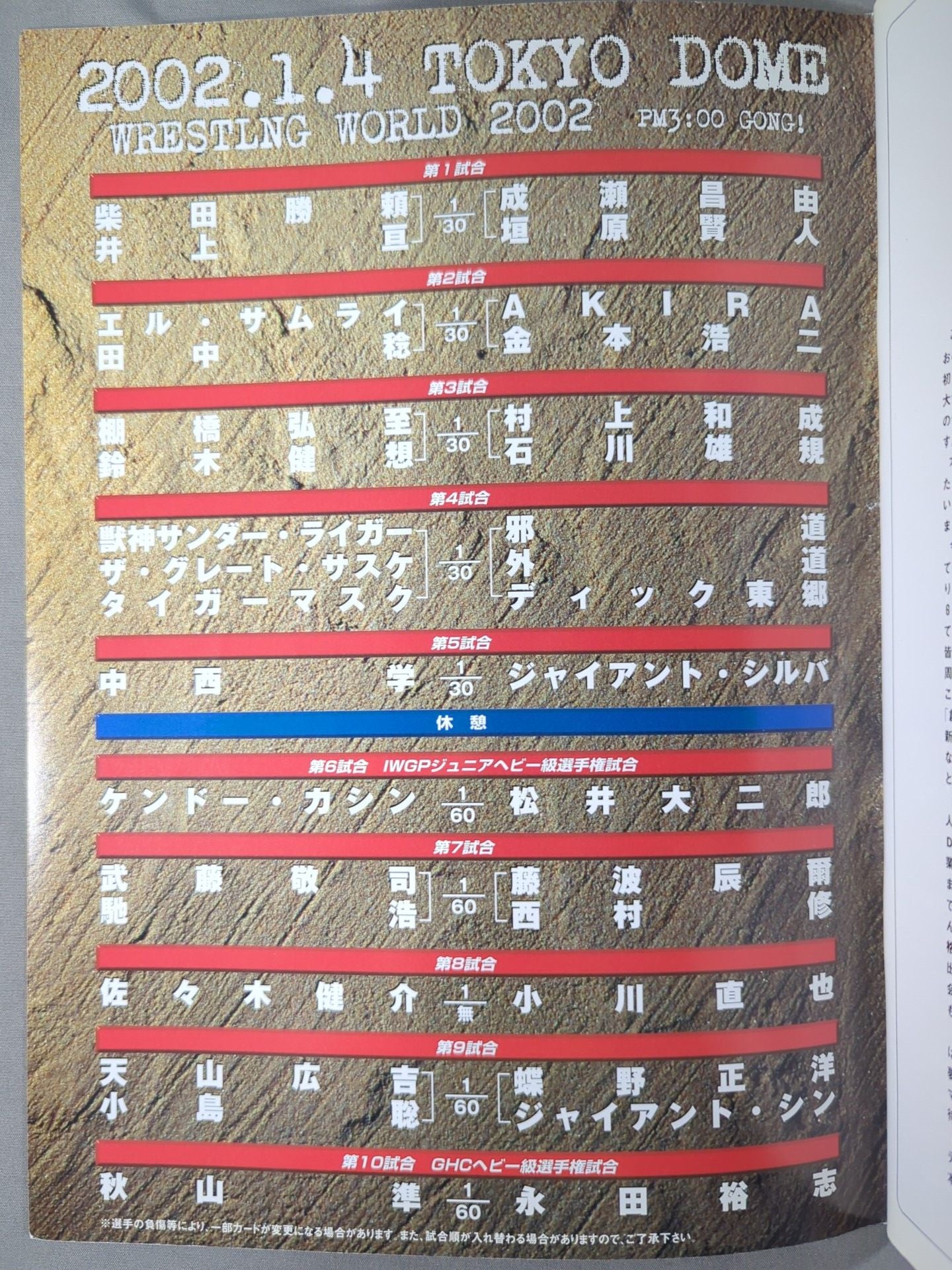 会場:東京ドーム / 印刷対戦カード:【GHCヘビー級選手権試合】秋山準vs永田裕志