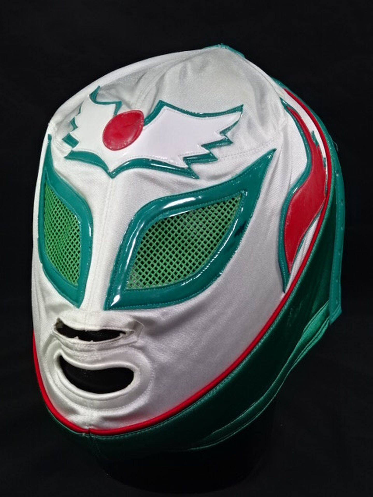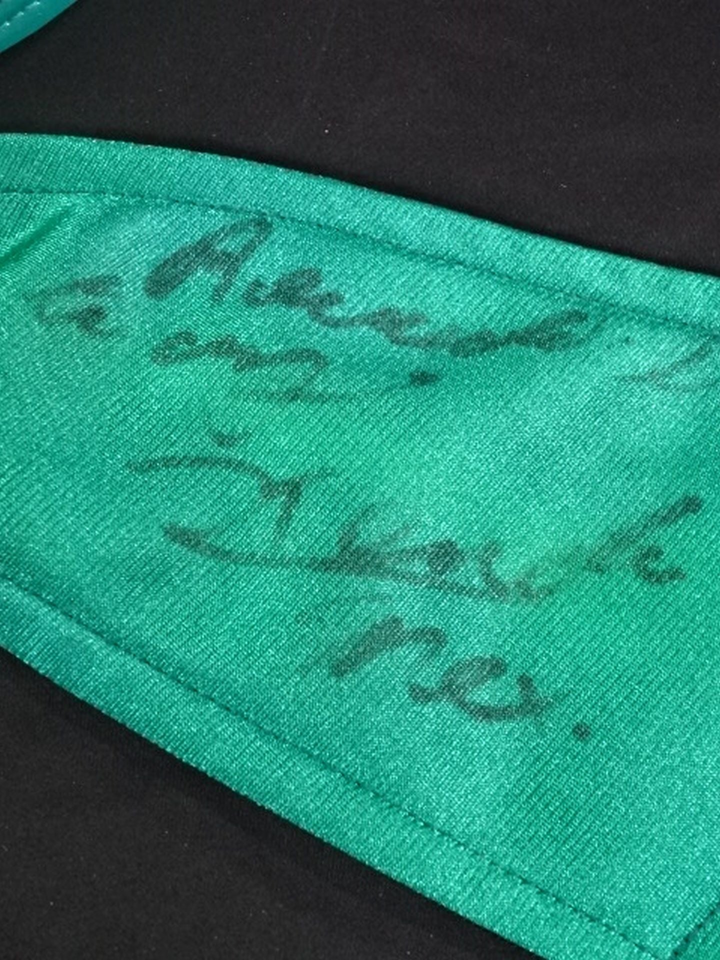 ★ビンテージ年代物マスク★ サイン入り 銀&赤&緑スポル2重生地 緑フチ&白フチ&赤フチ