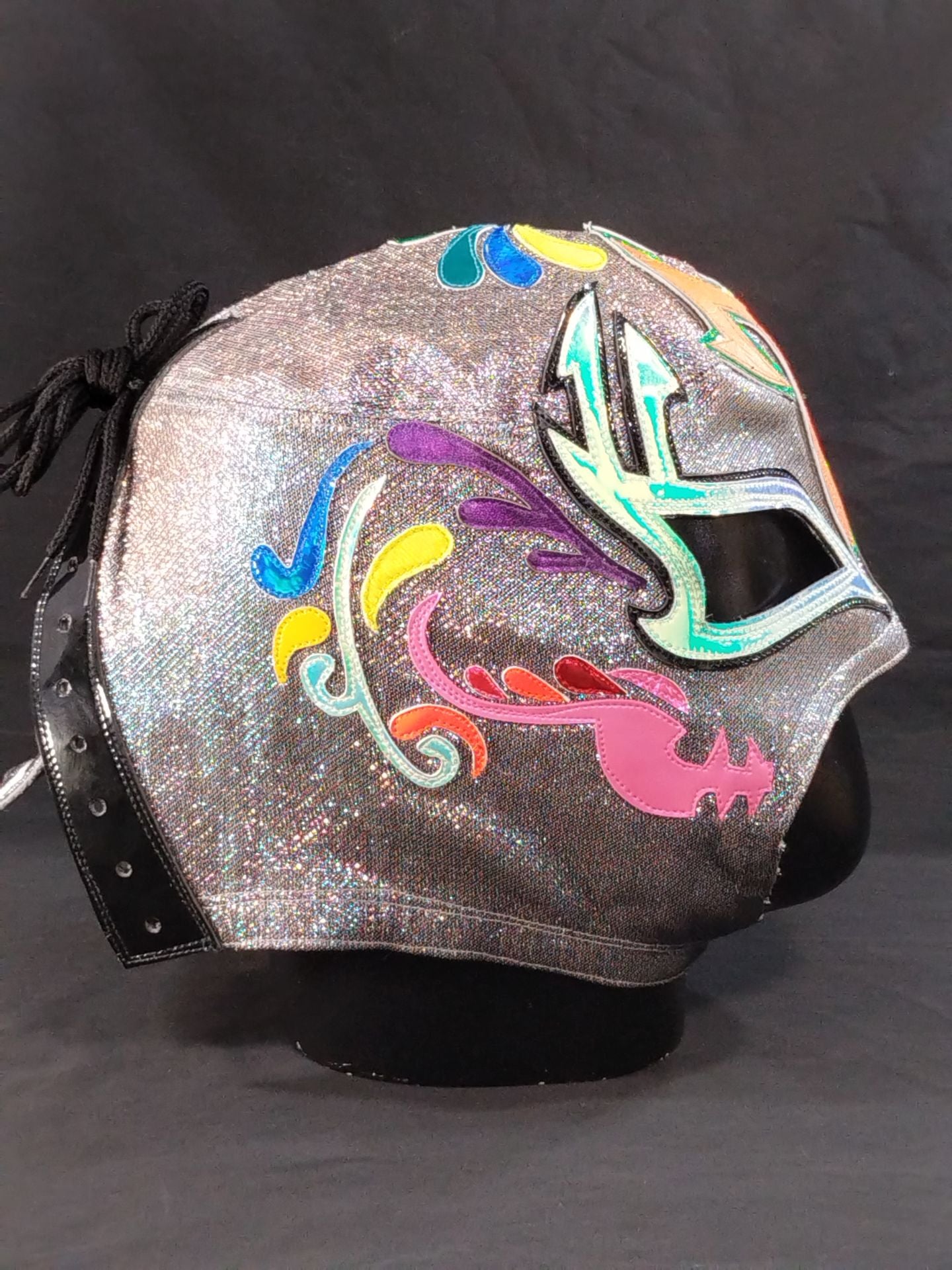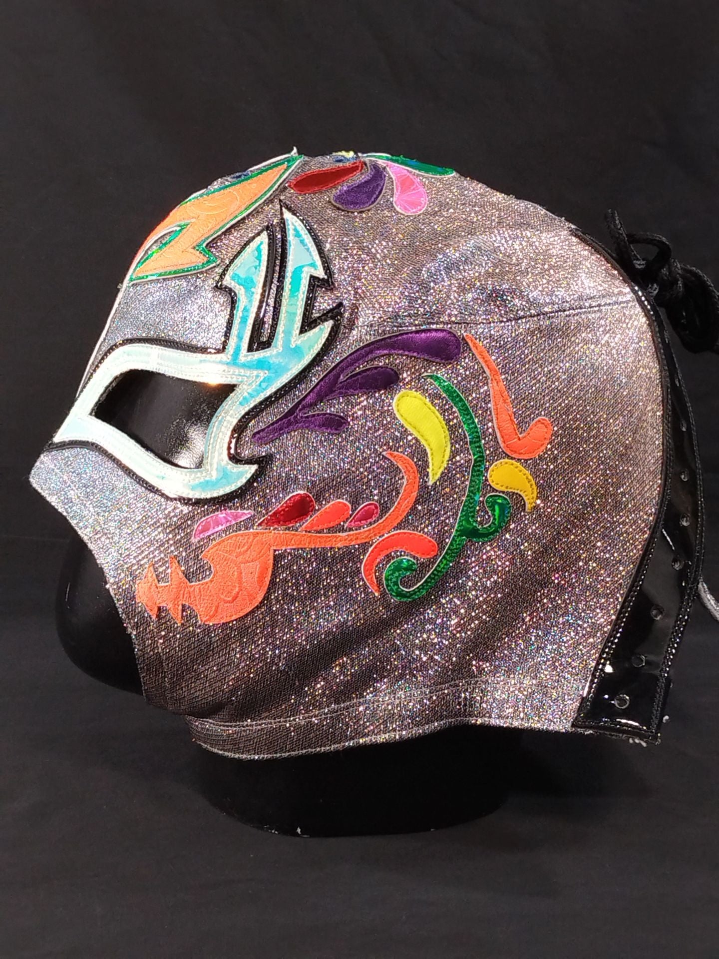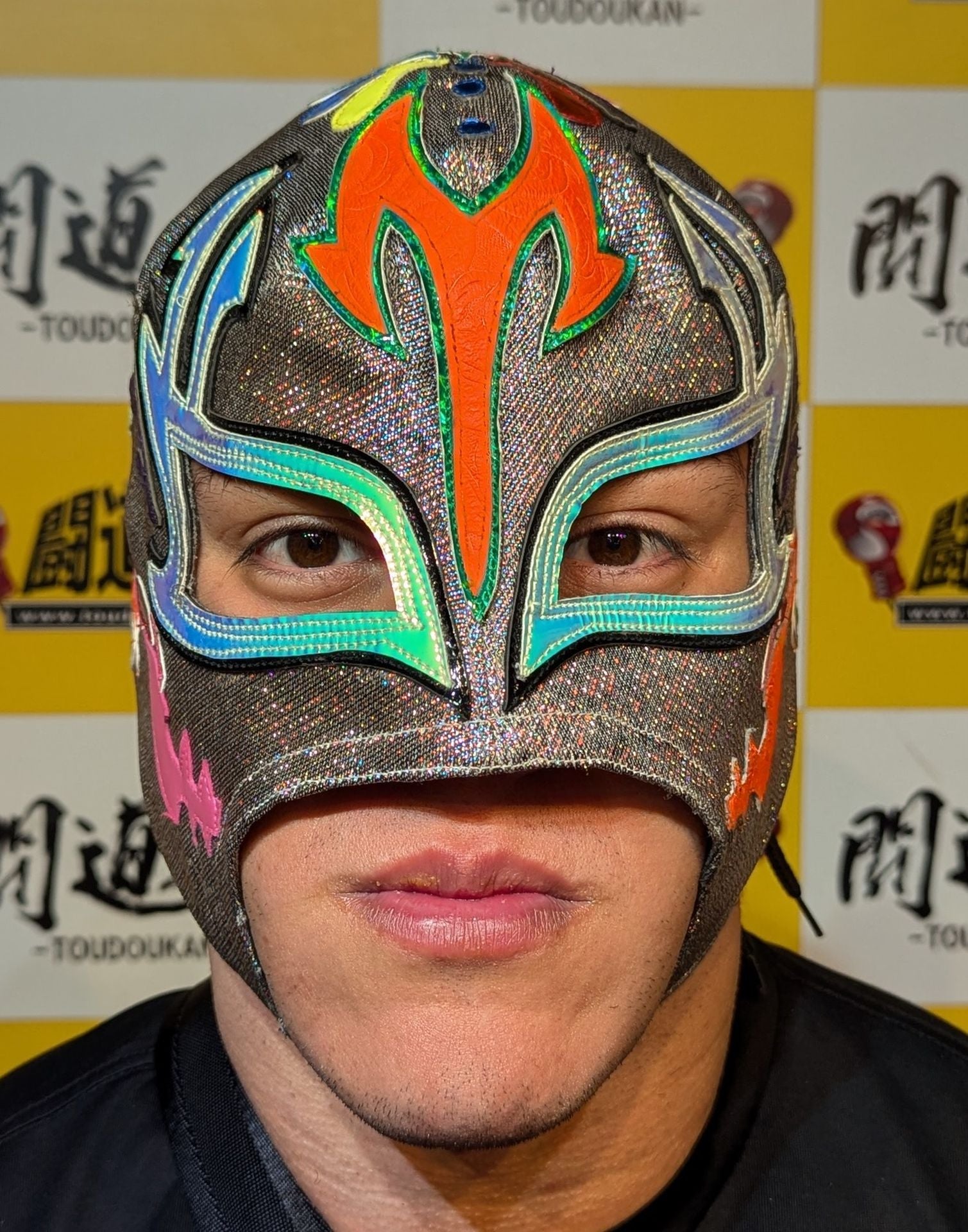 ★CMLL ディア・デ・ムエルト(死者の日) 実使用★ 本人使用サイン入り 着用写真付 ガンメタラメ2重生地 黒地ライトグリーン特殊フチ&緑特殊フチ&オレンジ特殊フチ 2024年にメキシコでの試合で使用していたもの