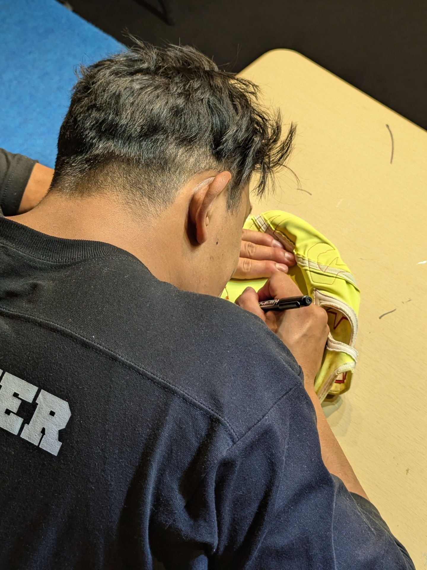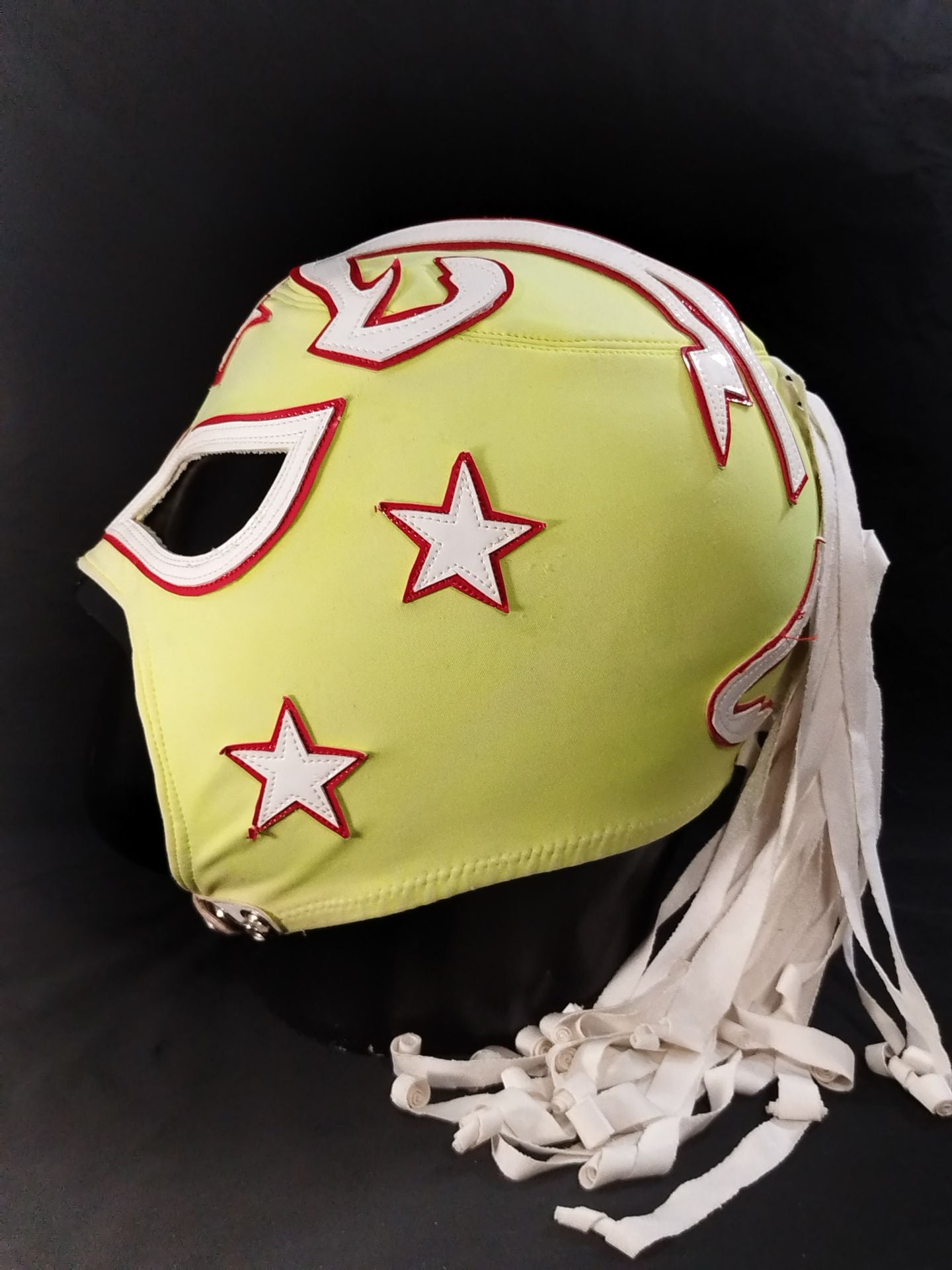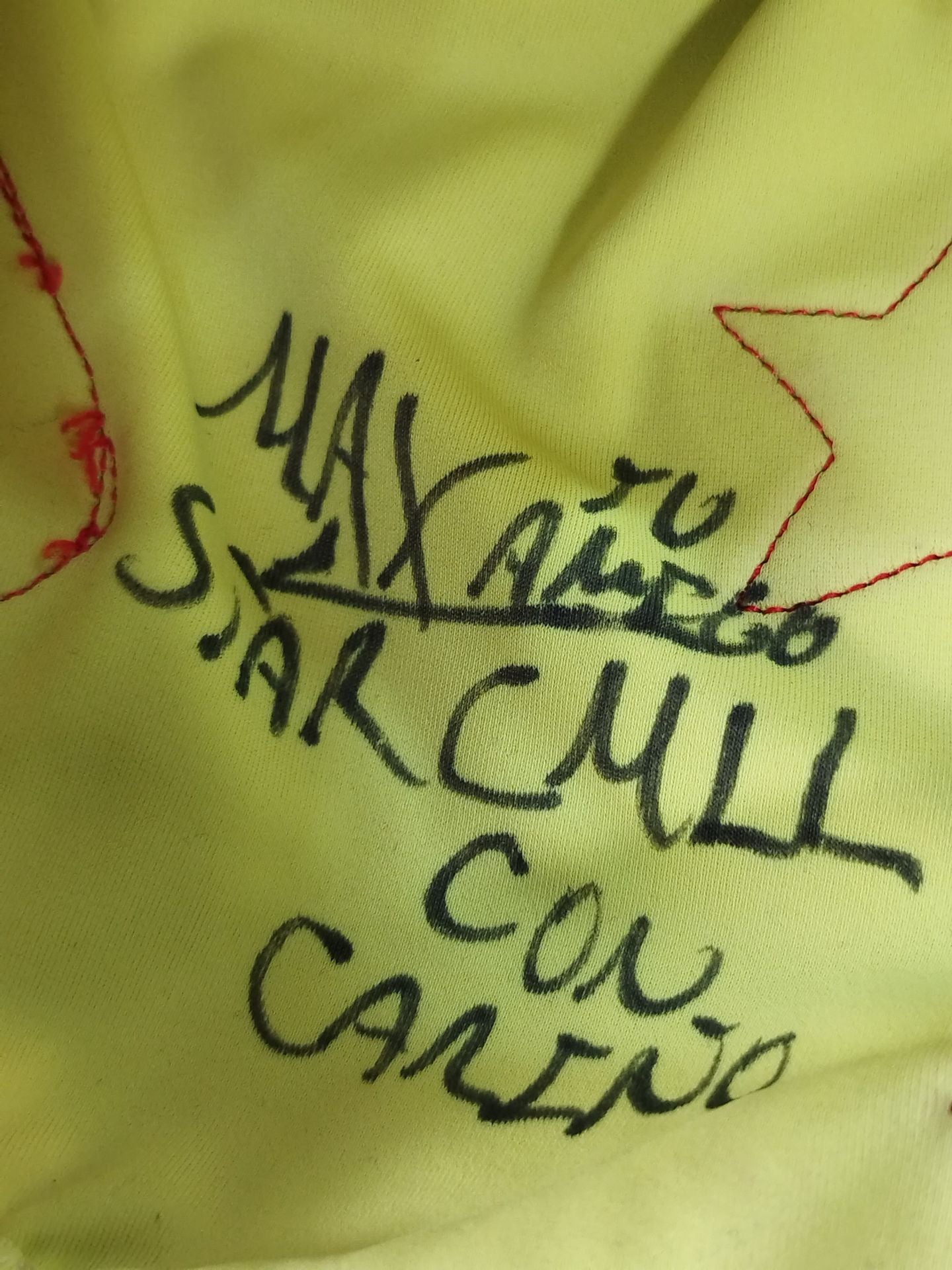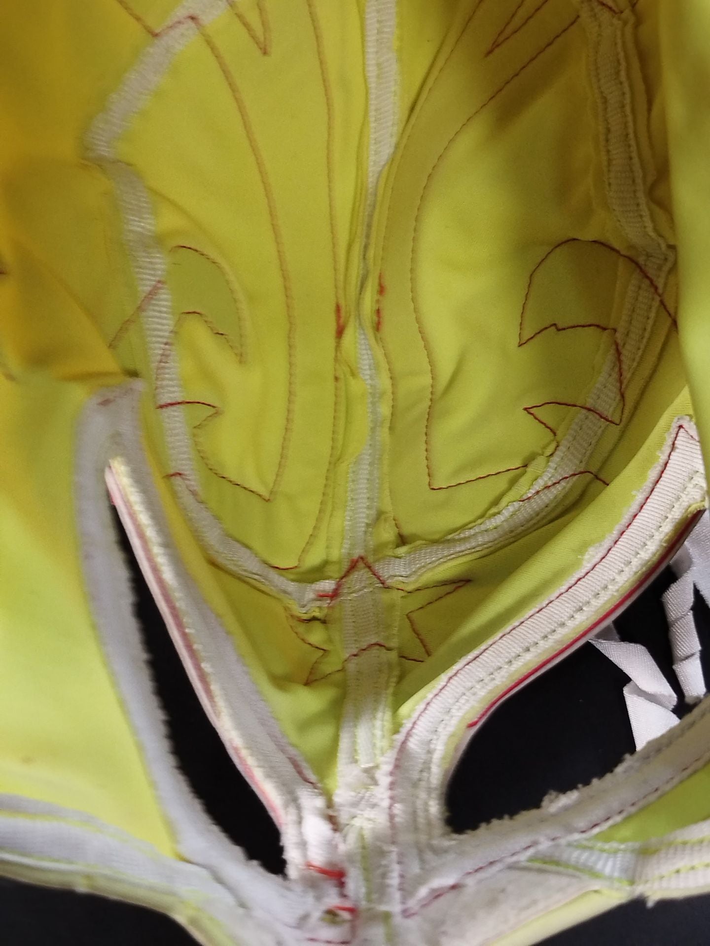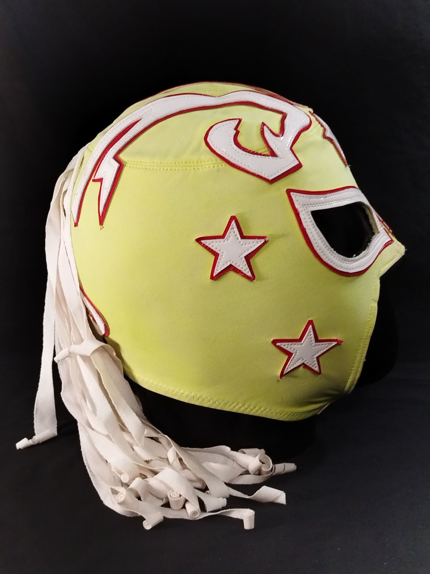 本人使用サイン入り(TU AMIGO CMLL CON CARINO) 着用写真付 薄黄色レオタード2重生地 赤地白フチ 2016年頃にメキシコでの試合で使用していたもの