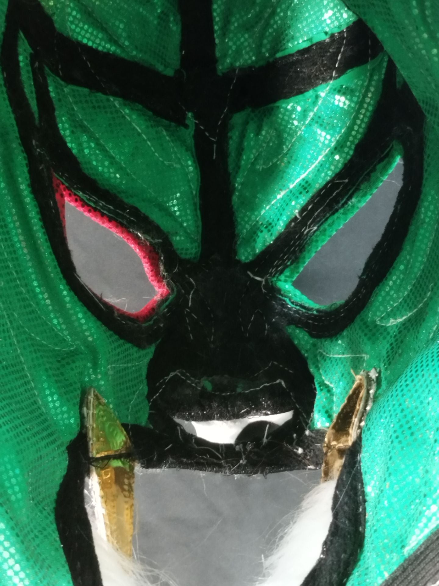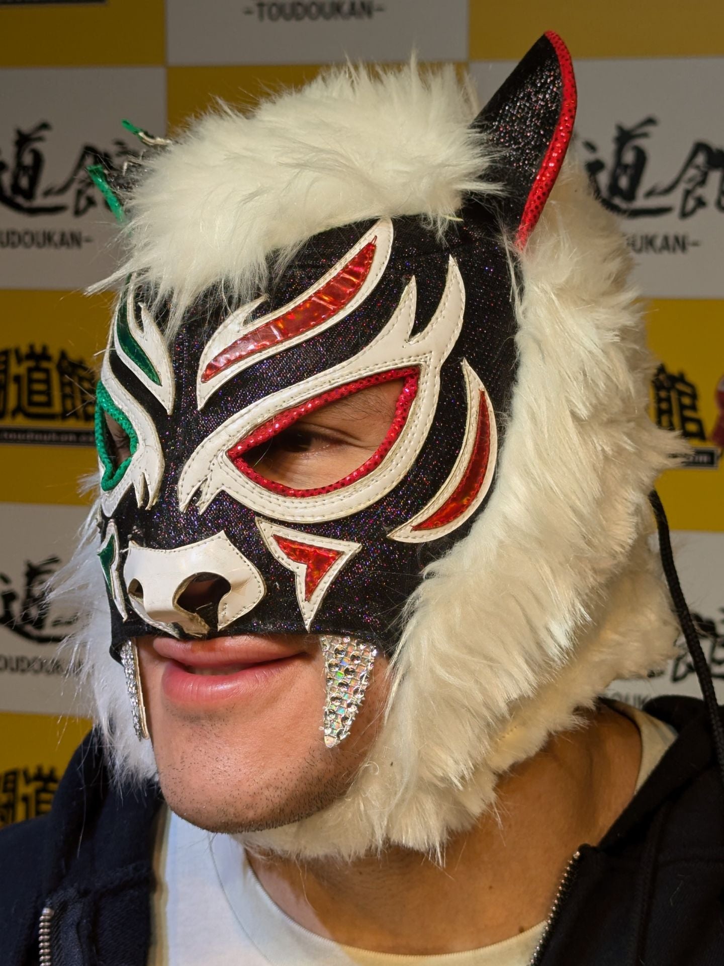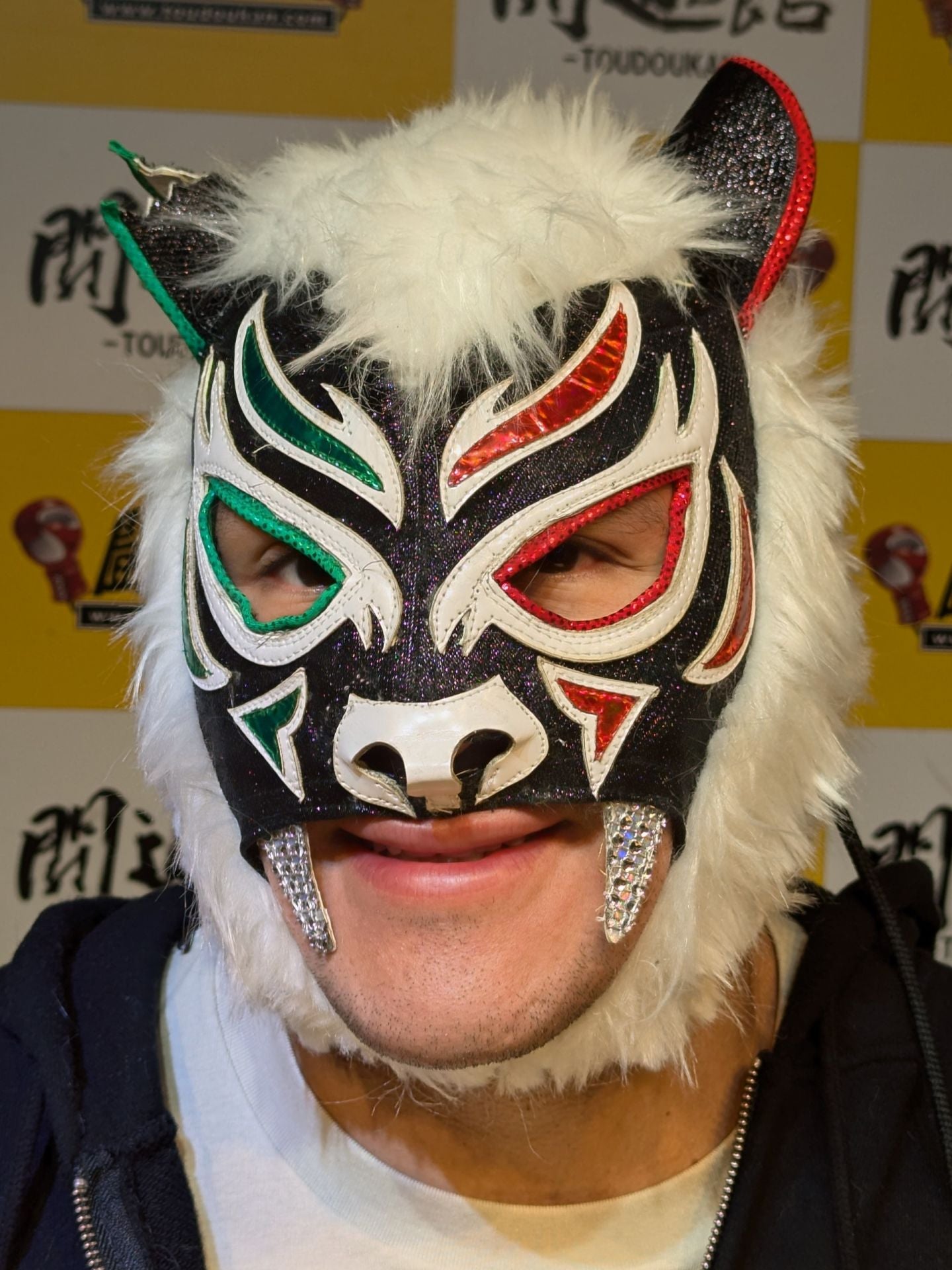 本人使用サイン入り 着用写真付 黒ラメ2重生地 白地緑特殊フチ&赤特殊フチ&銀特殊フチ 2024年にメキシコでの試合で使用していたもの