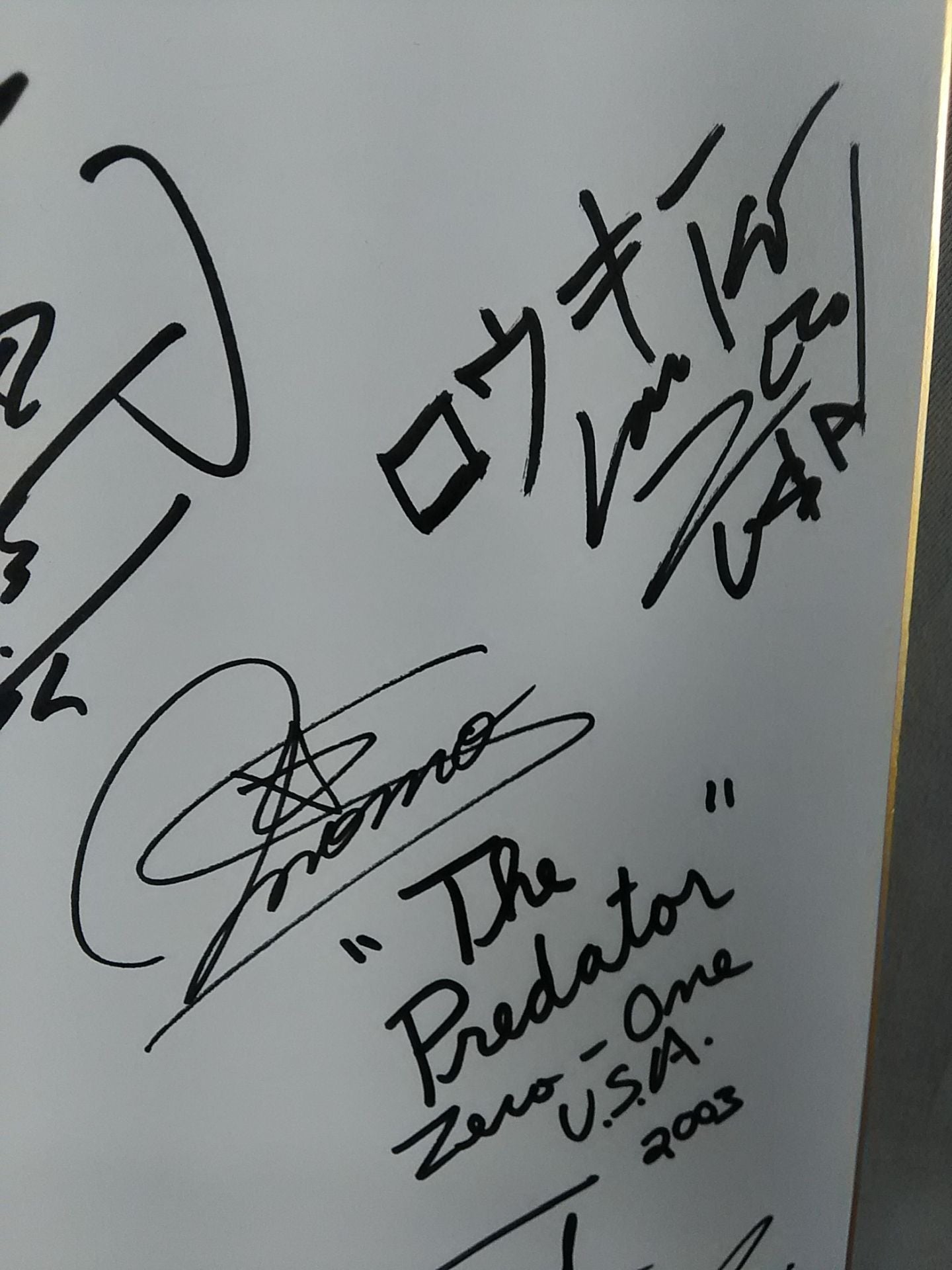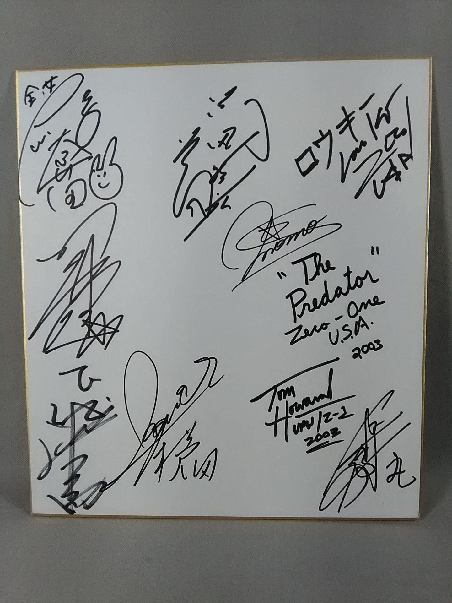高橋奈苗、黒田哲広、ロウ・キー、中西百重、ザ・プレデター、トム・ハワード、田中将斗、ライオネス飛鳥、マイティ井上、他1名の直筆サイン寄せ書き!