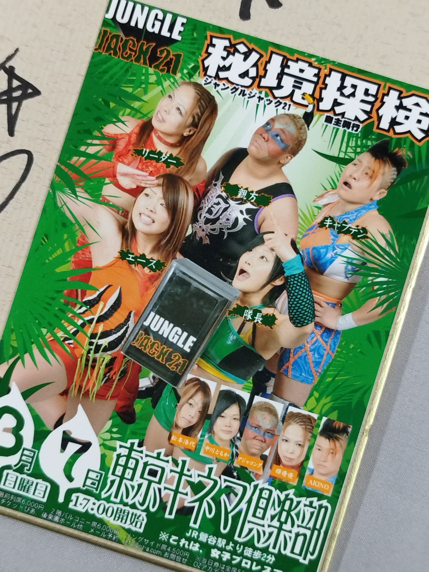 ★ジャングルジャック21 自主興行 秘境探検★ 5選手 寄せ書き(ブロマイド貼付)