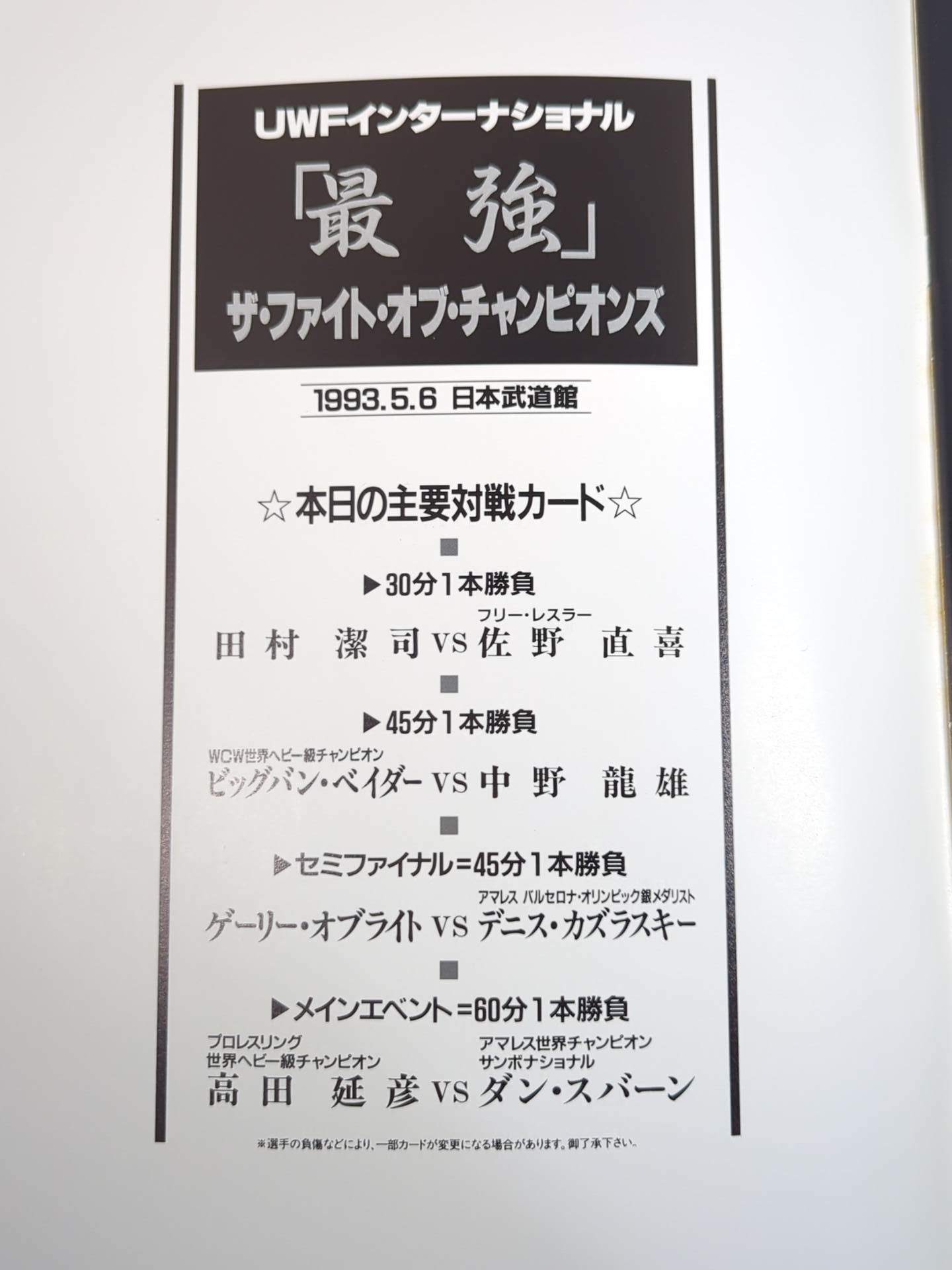 会場:日本武道館 / 印刷対戦カード:高田延彦vsダン・スバーン