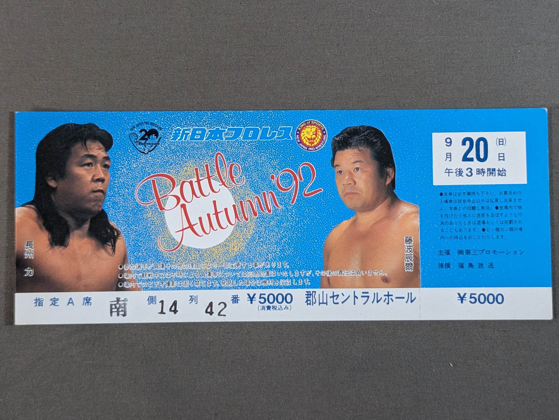 指定A席 南側14列42番 / 長州力&マサ斎藤&佐々木健介vsスコット・ノートン&グレート・コキーナ&ワイルド・サモアン