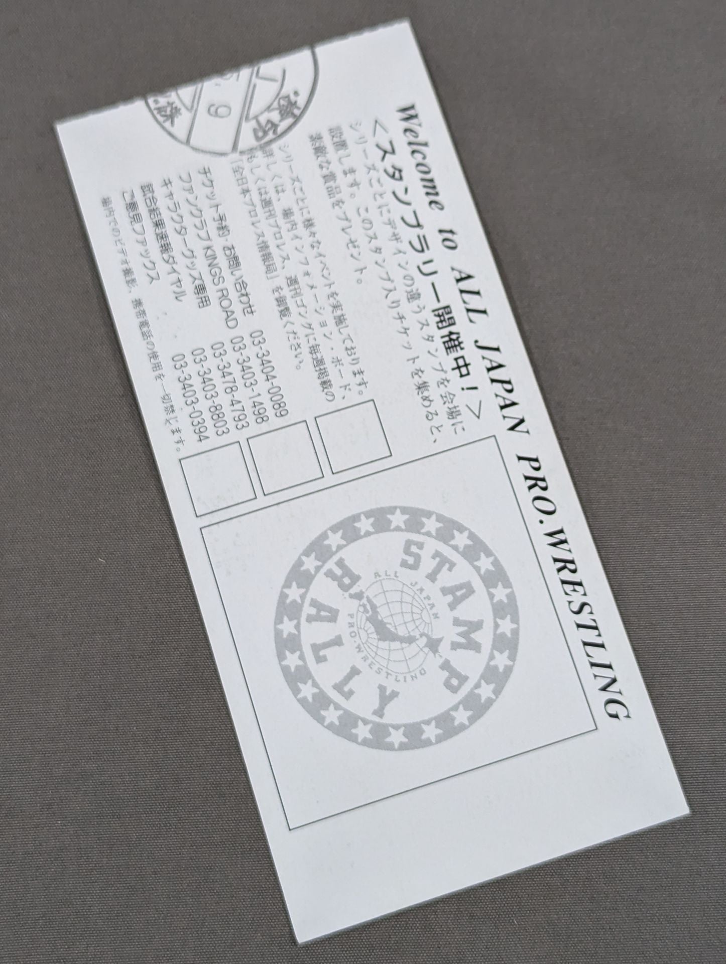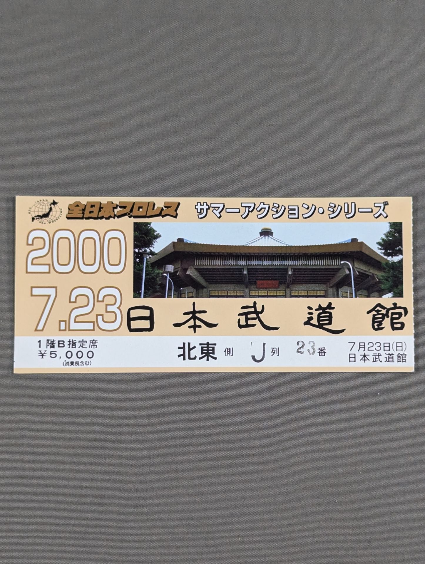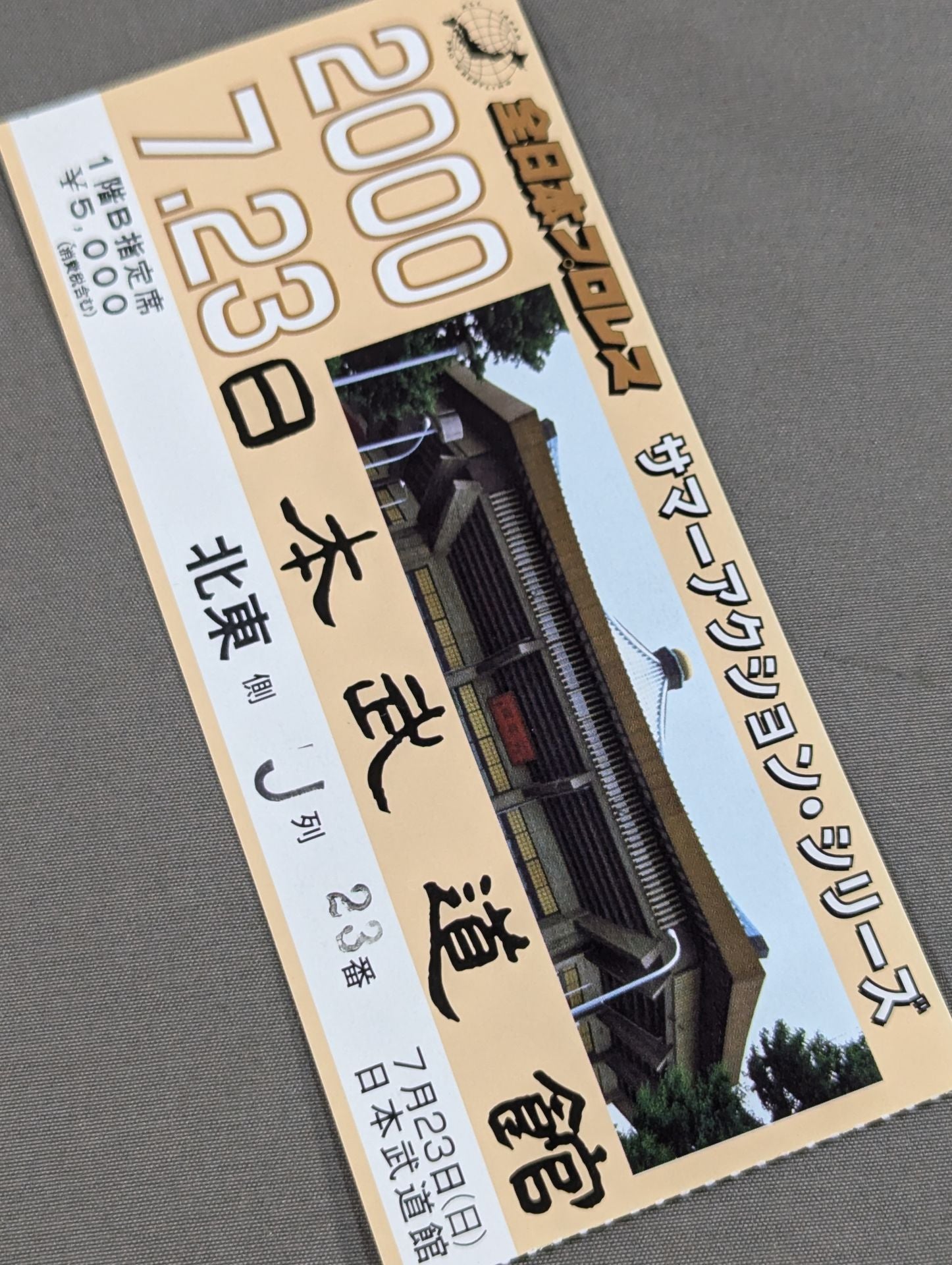 1階B指定席 北東側J列23番 / 川田利明&天龍源一郎vsスタン・ハンセン&マウアケア・モスマン