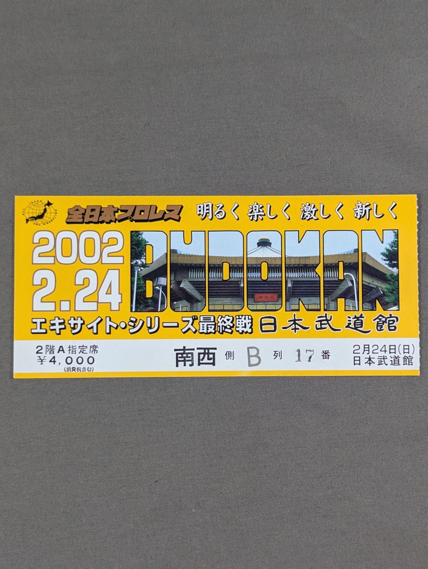 2階A指定席 南西側B列17番 / 【三冠ヘビー級選手権試合】武藤敬司vs川田利明
