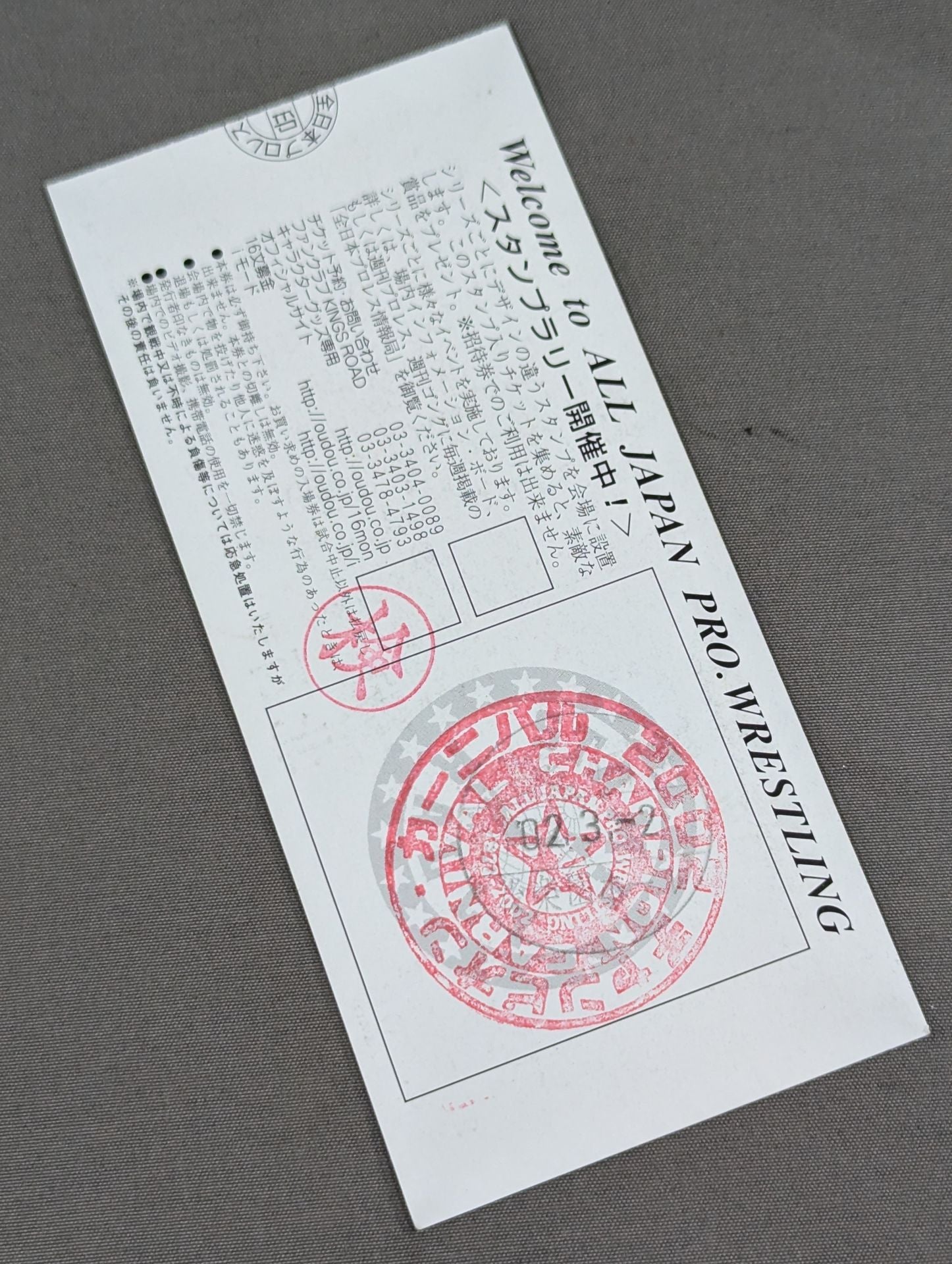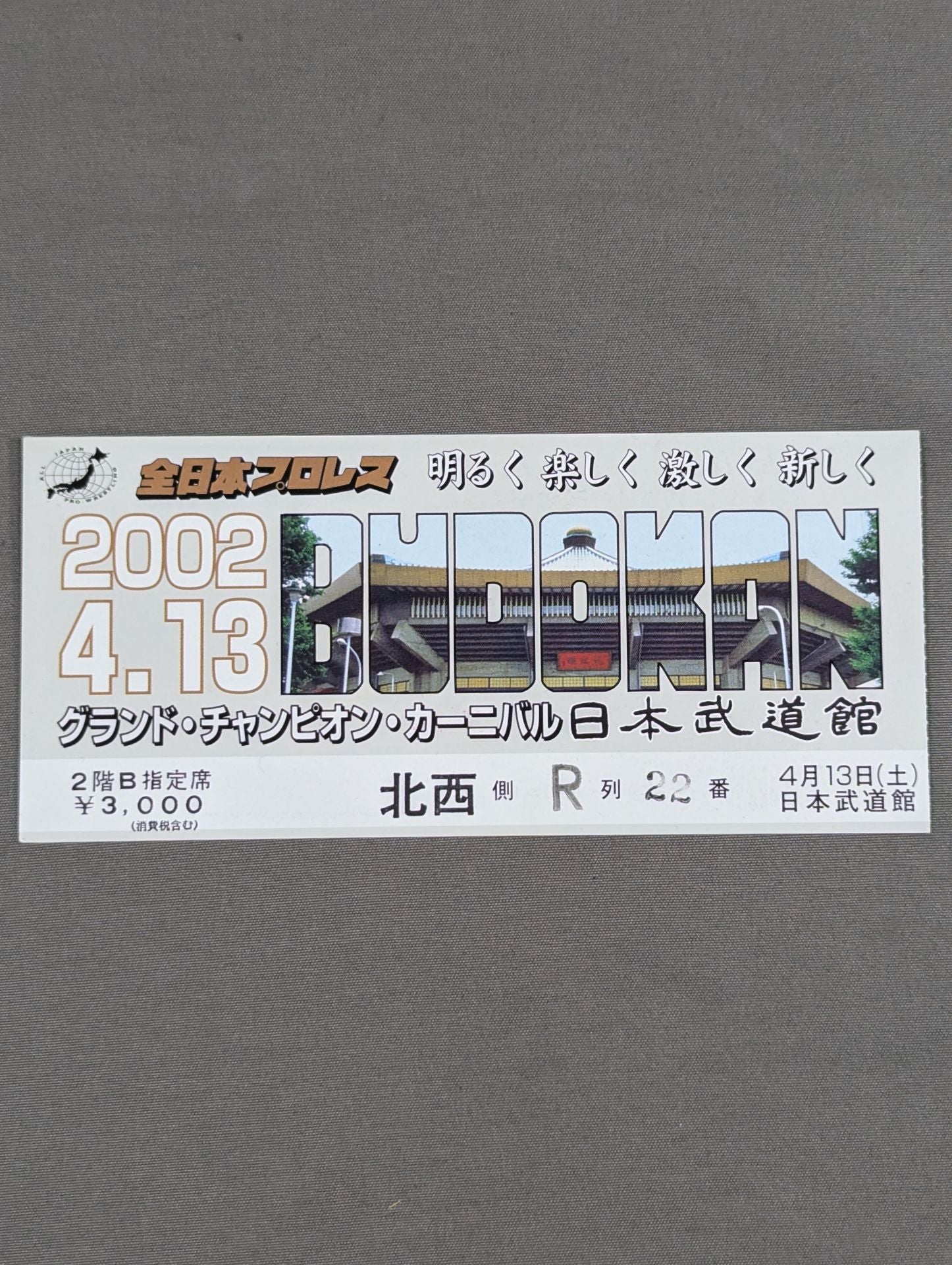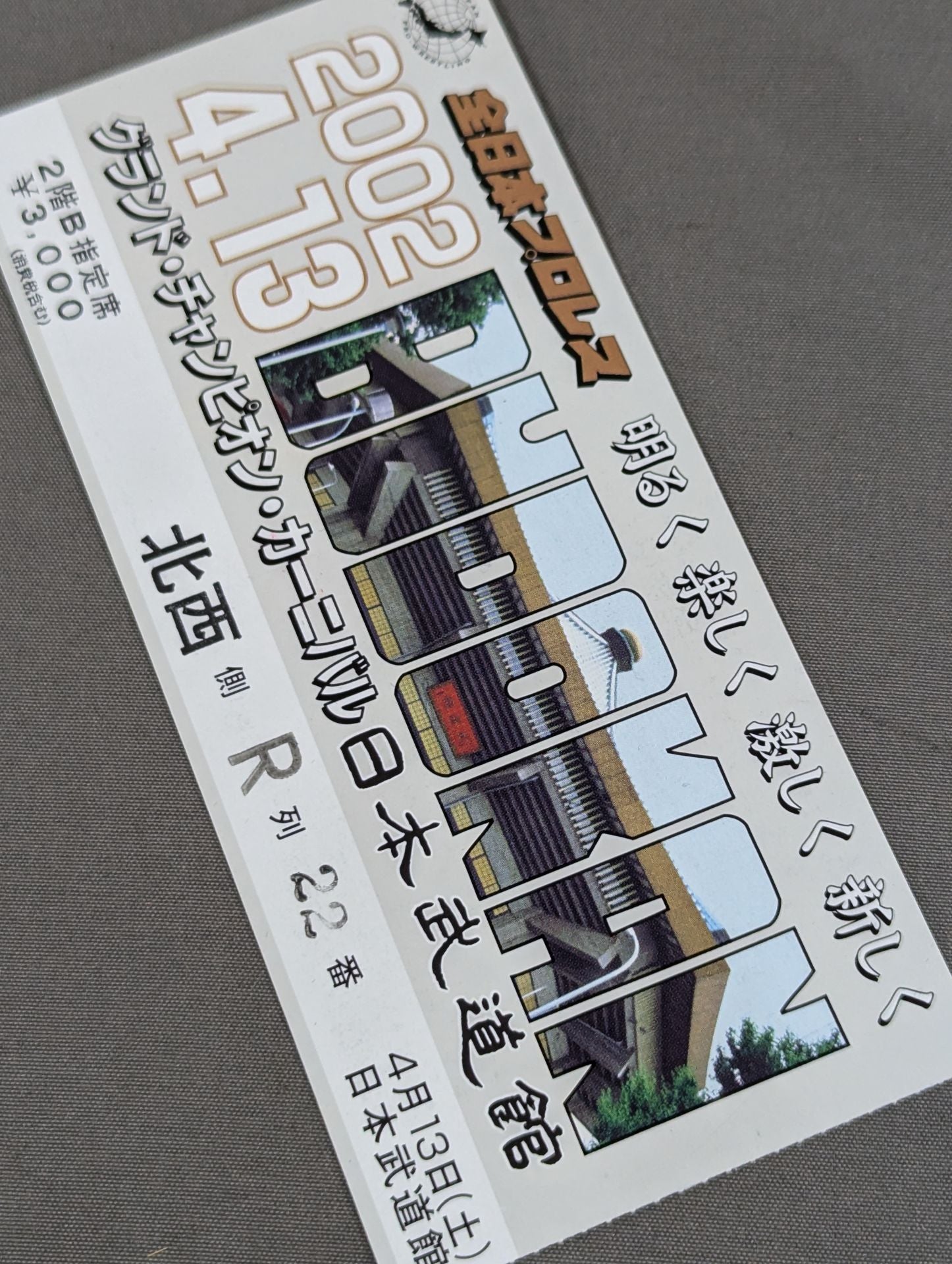 2階B指定席 北西側R列22番 / 【三冠ヘビー級王座決定戦】武藤敬司vs天龍源一郎