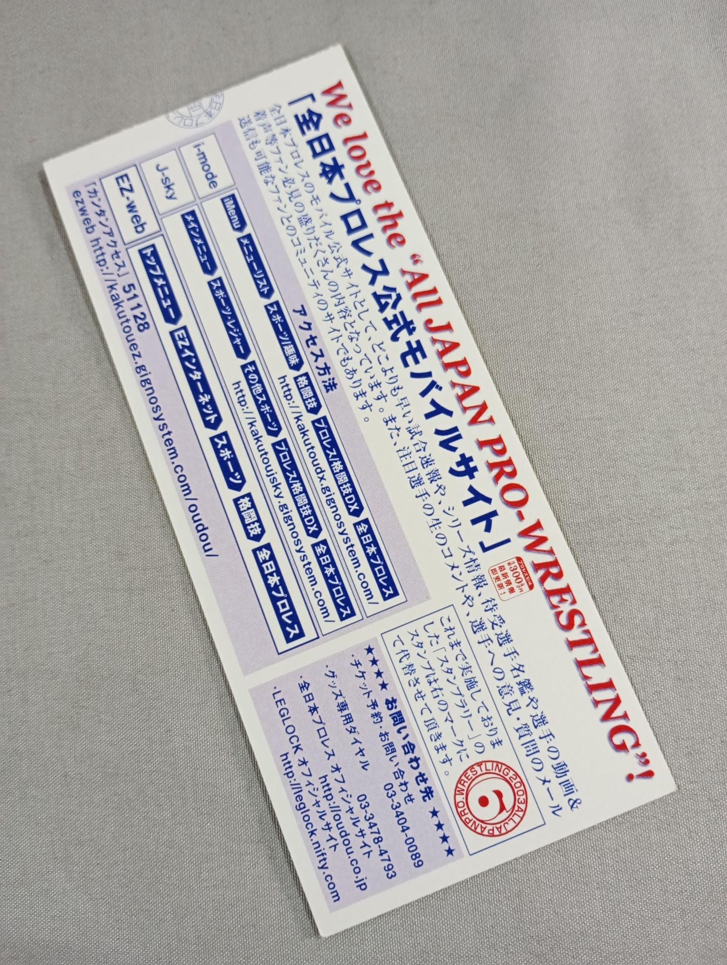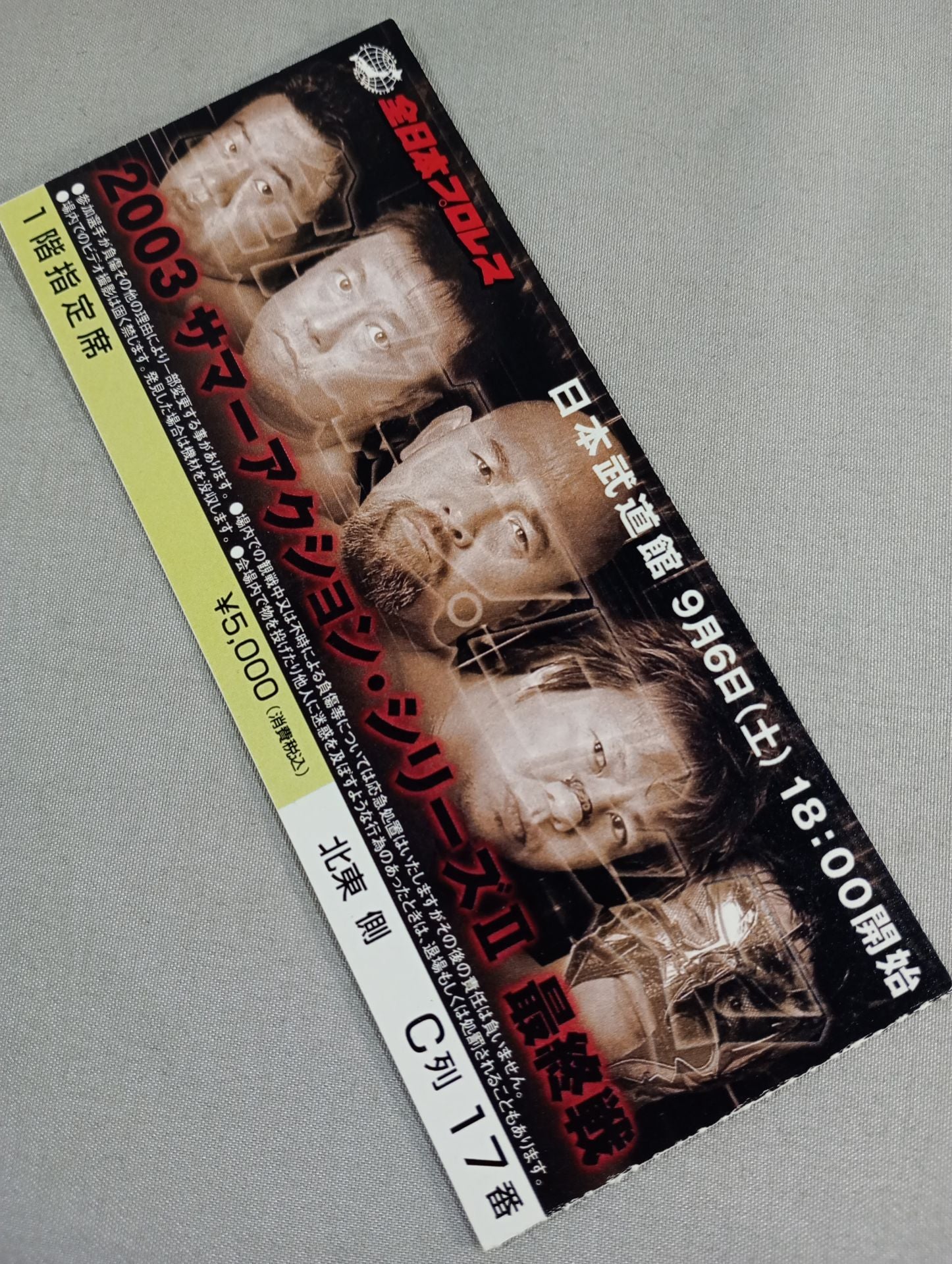 2003年 1階指定席 北東側C列17番 / 【新三冠王者決定トーナメント決勝戦】川田利明vs大谷晋二郎 /【世界ジュニアヘビー級選手権】ケンドー・カシンvsザ・グレート・サスケ
