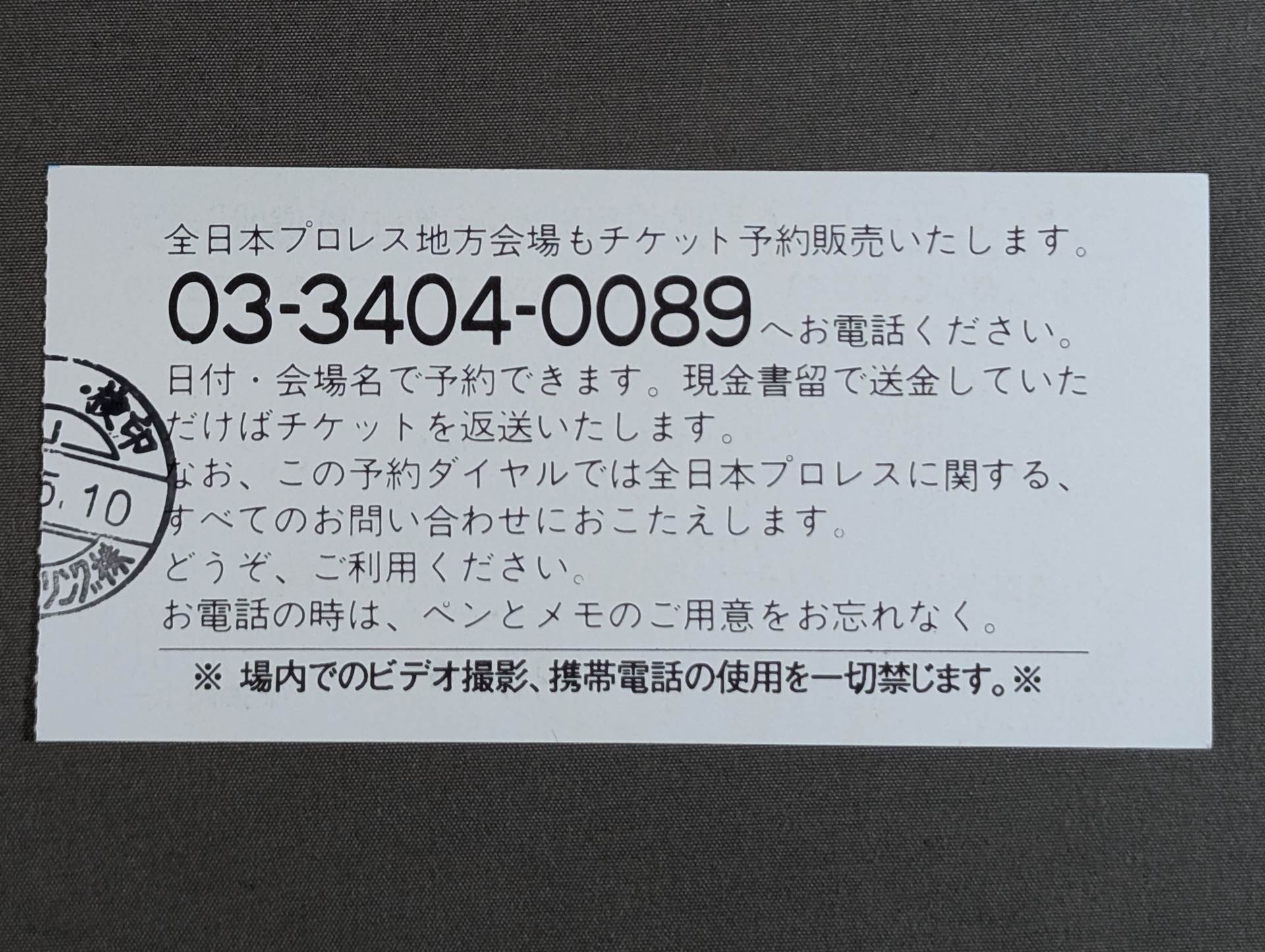 指定席 南側P列28番 / ジャイアント馬場&三沢光晴&本田多聞vsスタン・ハンセン&ジョニー・エース&パトリオット