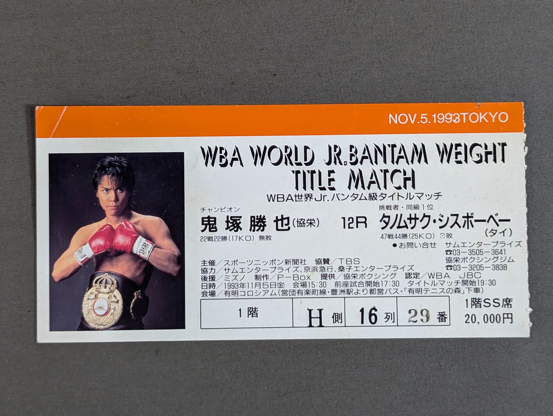 ★WBA世界Jrバンタム級タイトルマッチ★ 1階SS席 H側16列29番
