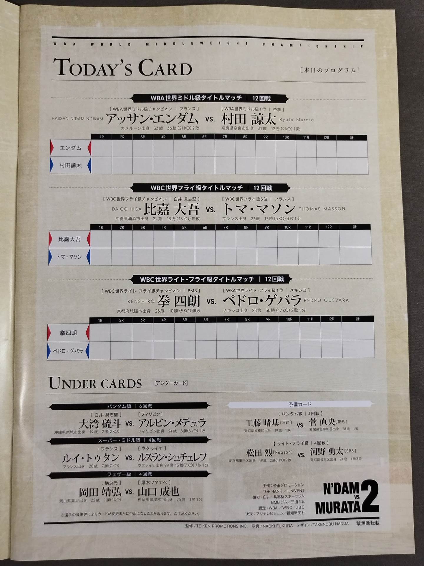 ★22年ぶり日本人ミドル級チャンピオン誕生!★ 会場:両国国技館 / 印刷対戦カード:【WBC世界ミドル級タイトルマッチ】村田諒太vsアッサン・エンダム(再戦) /【WBC世界フライ級タイトルマッチ】比嘉大吾vsトマ・マソン /【WBC世界ライトフライ級タイトルマッチ】拳四朗vsペドロ・ゲバラ / BOXING FES 2017 SUPER 2 DAYS