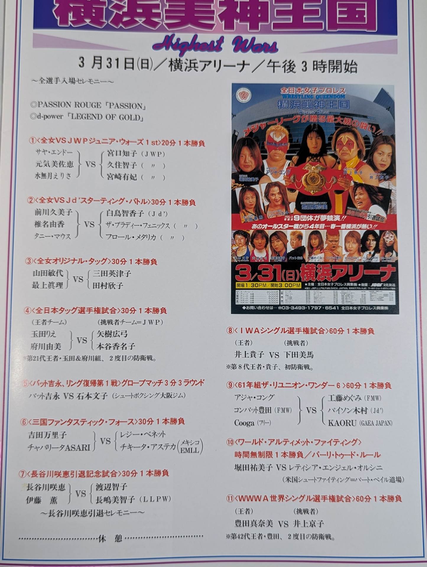 会場:横浜アリーナ / 印刷対戦カード:【WWWA世界シングル選手権試合】豊田真奈美vs井上京子