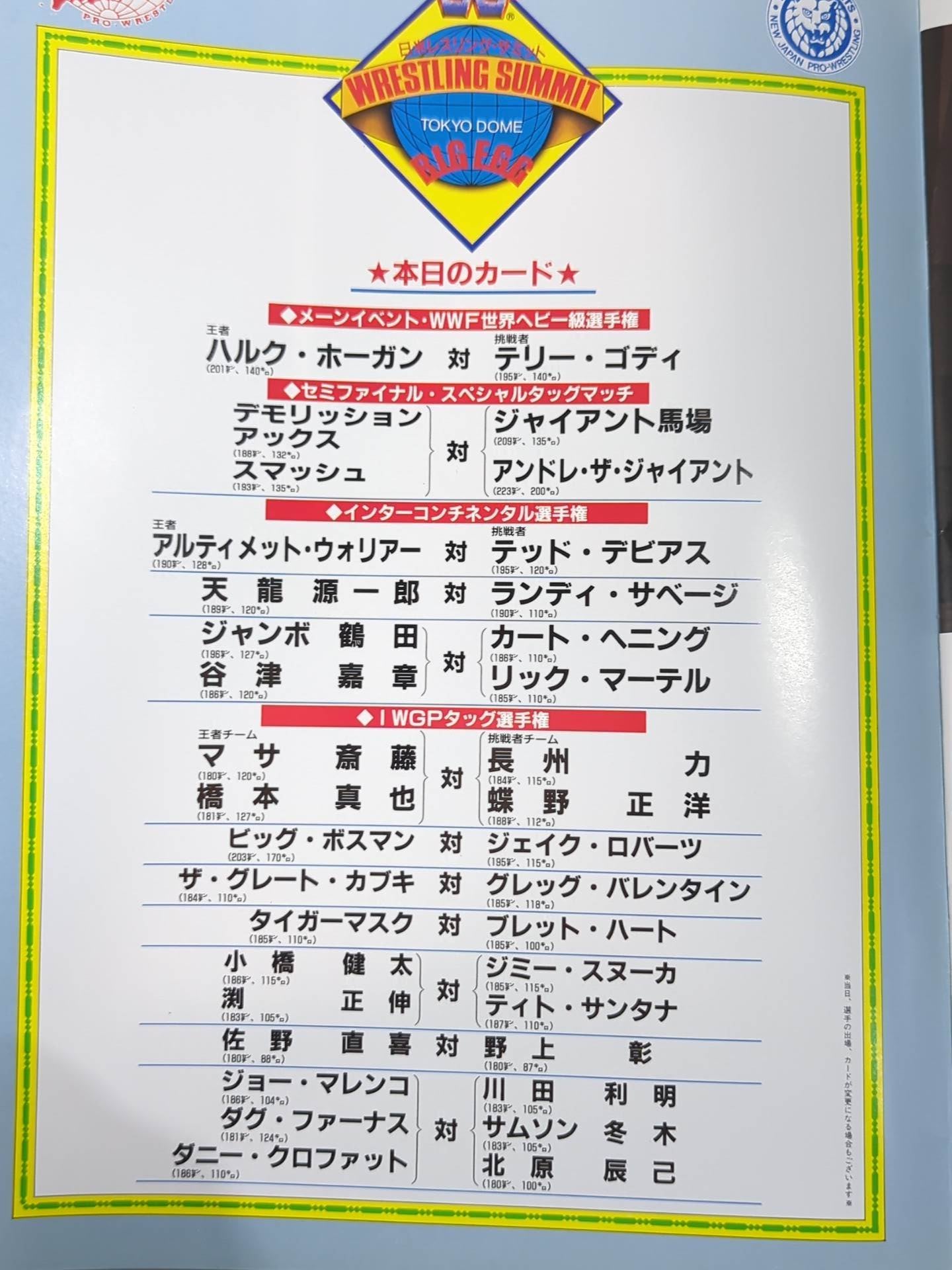 会場:東京ドーム / 印刷対戦カード:【WWF世界ヘビー級選手権試合】ハルク・ホーガンvsテリー・ゴディ(スタン・ハンセンに変更) / デモリッション(アックス&スマッシュ)vsジャイアント馬場&アンドレ・ザ・ジャイアント /【WWFインターコンチネンタル選手権試合】アルティメット・ウォリアーvsテッド・デビアス / 天龍源一郎vsランディー・サベージ